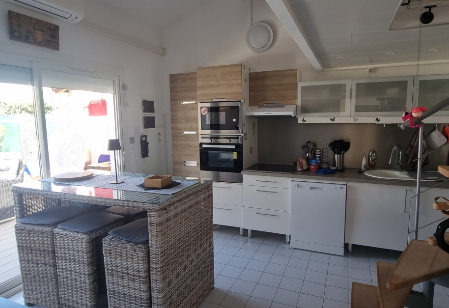 Die modern ausgestattete Küche verfügt über ein Induktions-Ceranfeld, einen Backofen, eine Mikrowelle und einen Geschirrspüler. Sie bietet